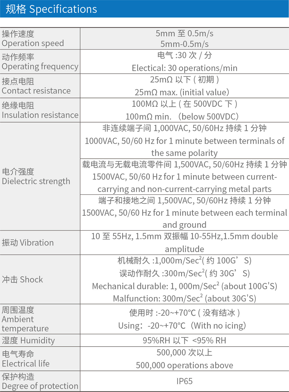 內(nèi)藏觸點座有雙簧片機構(gòu),機械壽命更長